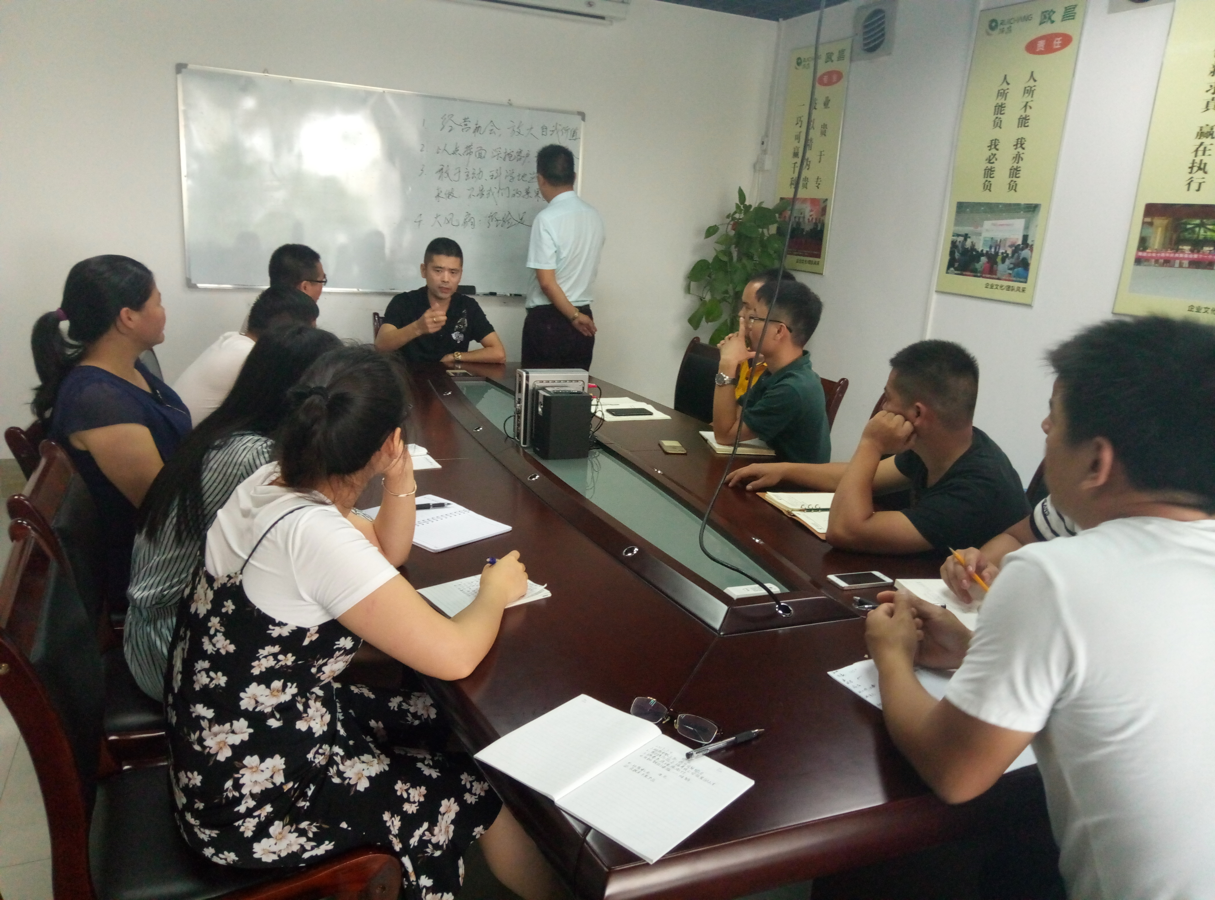 2017年已过去一半,世上没有十全十美,针对我们的上半年的不足之处我们也积极的进行检讨,以好学求进的之心弥补我们的不足。郑总指明了欧昌未来在通风降温领域的方向前景,以及我们的环保产品研发的进程。对外战略进展顺利,与东南亚多国建立合作伙伴。余总给我们讲解了,如何更节能环保的帮客户解决问题,让客户低投资也能达到客户预期想要的效果,针对上半年我们遇到的难题也进行了讲解。余总的经典句是:单单卖产品我们的未来是没有前途的,我们的价格是产品、技术、服务一起卖,这样才能得到客户的信赖!