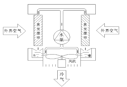 而蒸发式冷风机采用的是用循环水作为冷却介质喷淋空气,经过长时间循环后,水的温度理论上将等于空气的湿球温度、小于空气的干球温度而大于露点温度。若外界空气经过蒸发湿帘,空气的相对湿度增加,但整个过程不与外界发生热的交换,也是一个等焓的过程,此时经过处理后的空气状态是我们通常说的绝热加湿的过程。