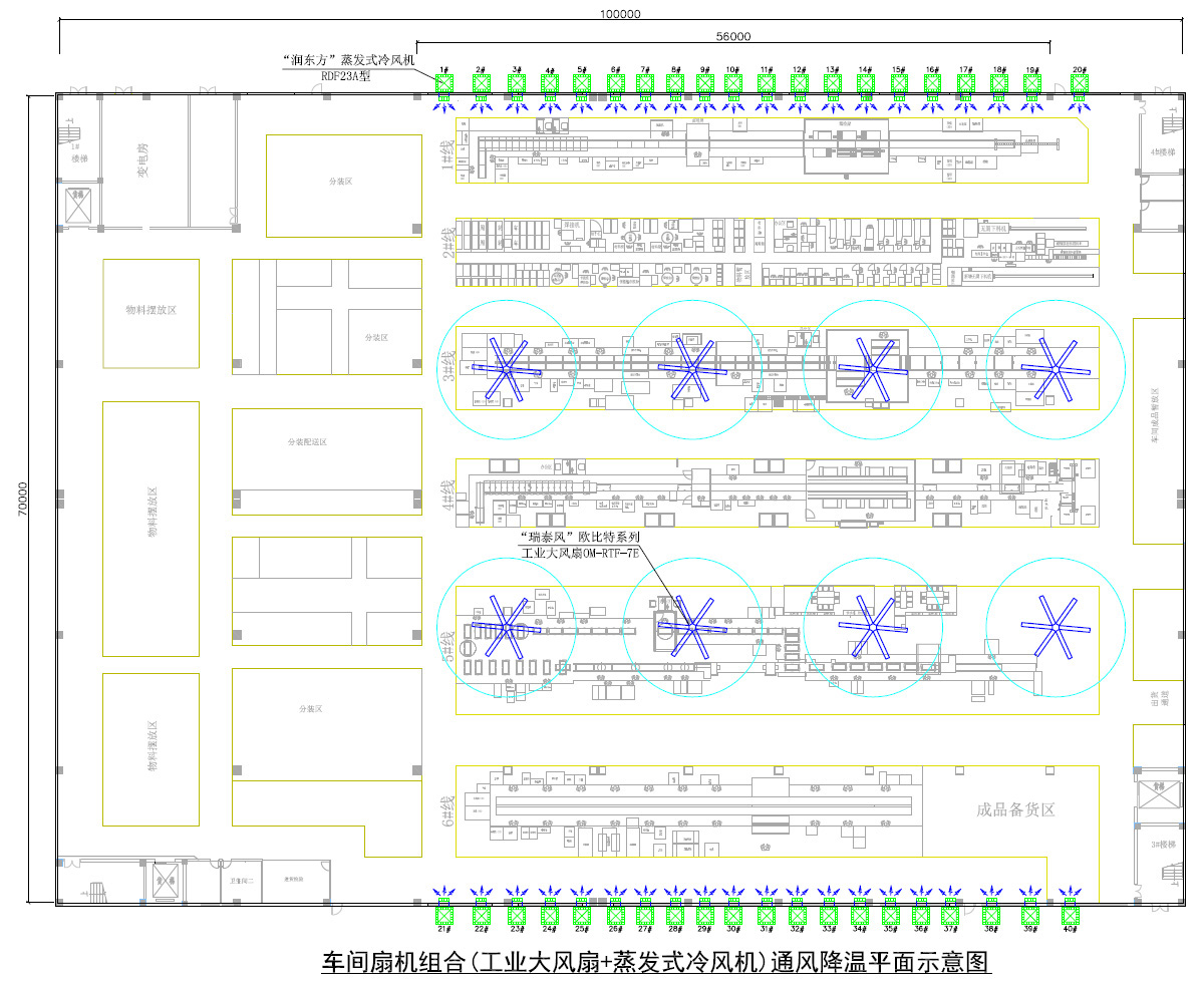 3、营造新风环境,可以达到单独使用大风扇或单独使用蒸发式冷风机均无法达到的全方位环境改善目标;